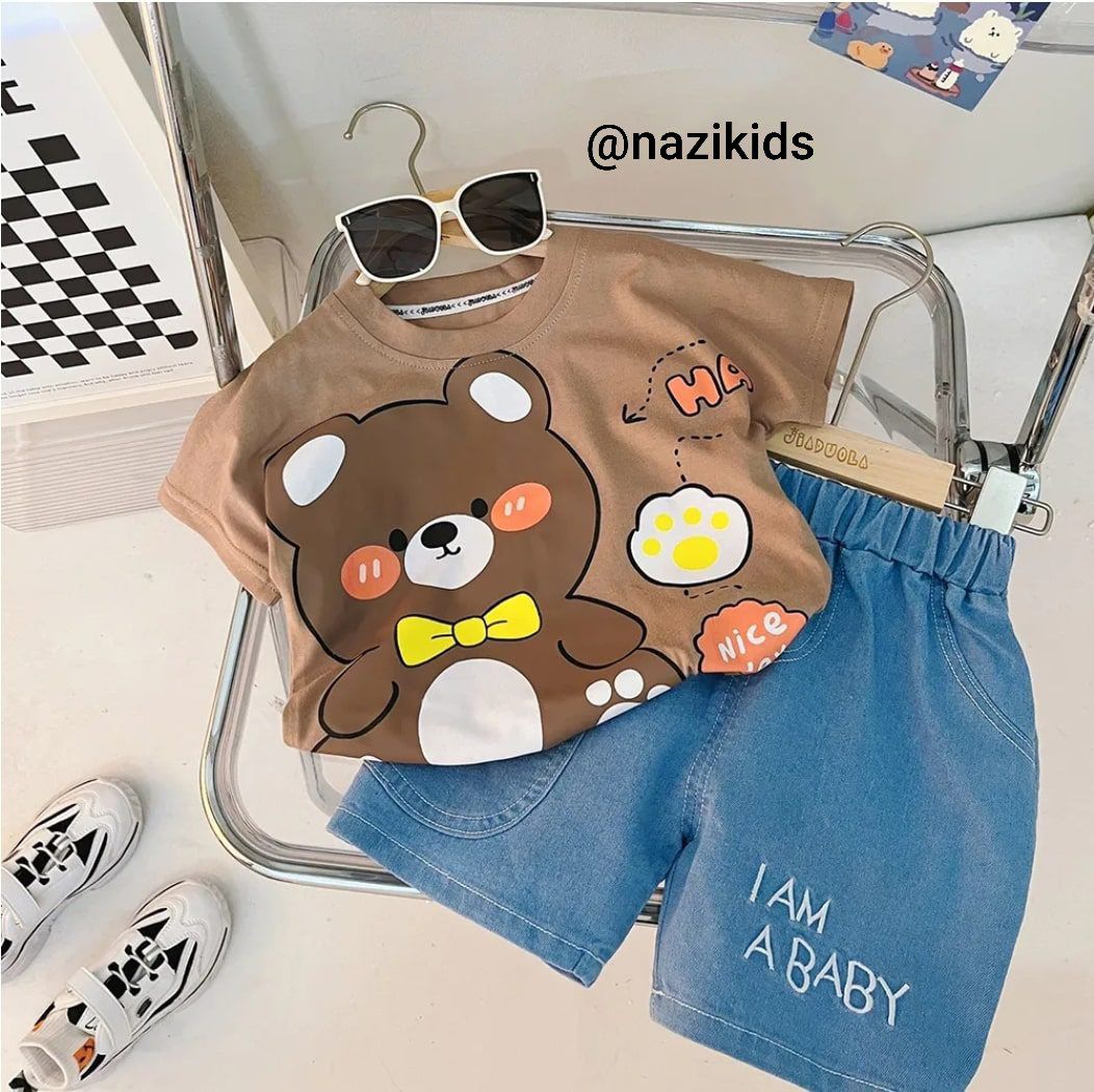 🍓تیشرت نخ پنبه باکیفیت ،شلوارک جین درجه یک